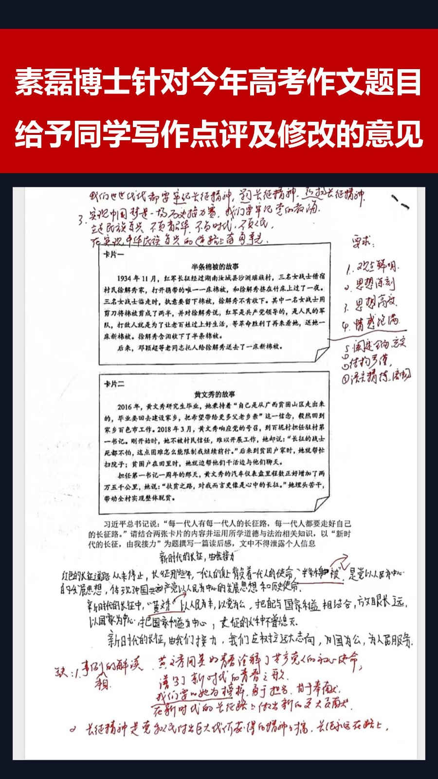素磊博士针对今年高考作文题目给予同学的写作点评和修改意见